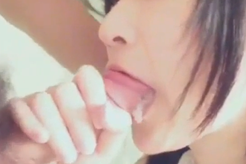 ドピューーーッ、ドピューーーッ、ドピューーーッ、ドピュッ、ドピュッ、ドピューーーッ、ドピューーーッ、ドピュッ、ドピュッ、すごい量の精子を口へ出してしまう。